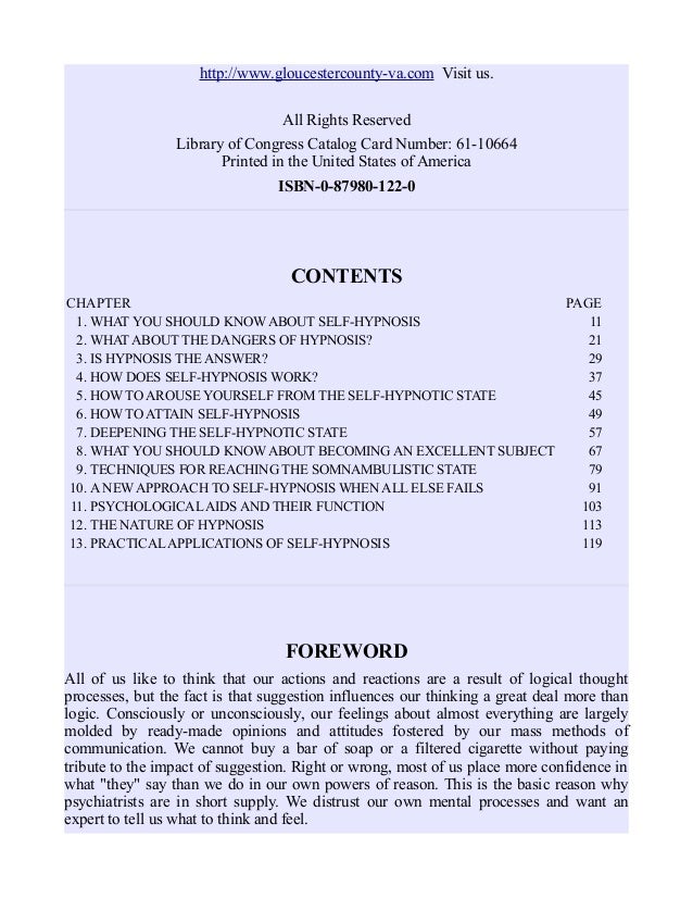Auto Suggestion What About The Dangers Of Hypnosis?. A New Approach To Selfhypnosis When All Else Fails Deepening The Selfhypnotic State How Does Selfhypnosis Work? How To Arouse Yourself From The Self